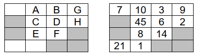 输入包含不超过 10 组数据。每组数据第一行包含 6 个整数 n, m, r1, c1, r2, c2(2 ≤ n, m ≤ 500, 1 ≤ r1, r2 ≤ n, 1 ≤ c1, c2 ≤ m). 接下来的 n 行每行包含 m 个格子的描述。每个格子要么是一个 1~100 的整数,要么是星号“*”(表示障碍物)。起点和终点保证不是障碍物。